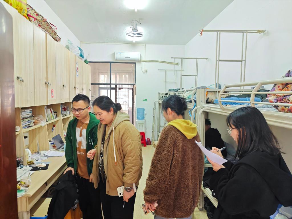 一方面,学院领导班子严格落实安全检查,先后来到行政办公室、教研室、会议室、考研自习室、学生宿舍等场所,实地查看了师生工作、学习、生活区域的设施配备与消防安全情况,重点走访检查了学院各实验室,详细了解实验室易燃易爆物品的安全存放及管理、领用、登记等情况等。学院领导要求全院师生进一步强化安全意识,夯实风险隐患的排查和处置能力。