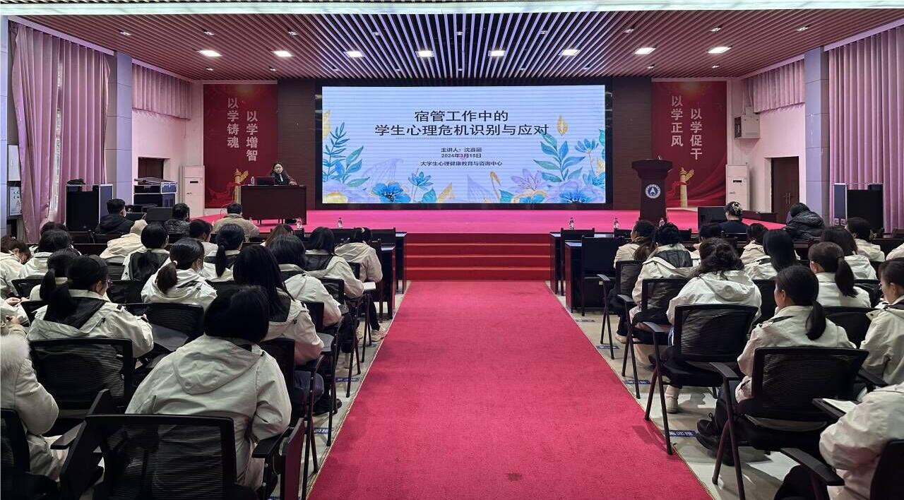此次培训邀请大学生心理健康教育与咨询中心沈赛丽老师,围绕“宿管工作中的学生心理危机识别与应对”从公寓管理人员工作角色、学生常见的心理危机识别、危机干预方法及沟通技巧等方面作了详细讲解。通过此次培训有效促进了公寓管理人员心理健康教育素养提升,为形成best365官网全面预防危机干预体系提供了有力支撑。