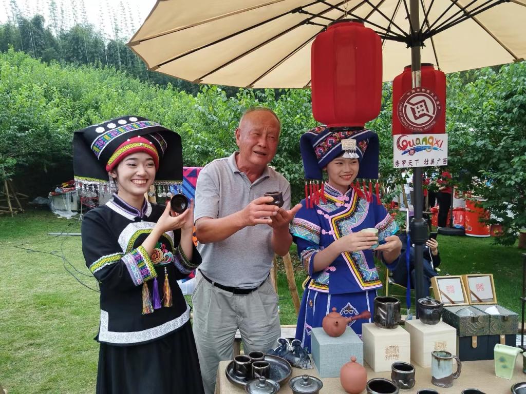 4月11日,传媒与艺术设计学院师生代表受广西壮族自治区文化和旅游厅邀请,参加了2024“广西三月三”主会场非遗展示活动。学院副院长刘浩然、陶瓷艺术工作室负责人伍玉彬、非遗传承人陈施淼以及工作室学生助理前往南宁市青秀山开展了陶瓷艺术非遗文化展览及宣传活动。