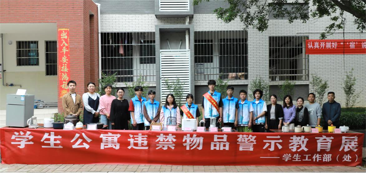 针对园区同学,学校在南北校区开展了学生公寓违禁物品警示教育展。通过实物、图片、文字等形式,展示了学生公寓的违禁物品及近年来发生的校园安全事故案例,让师生们直观认识到安全事故的严重性和危害性;警示教育展还设置了趣味互动答题环节——“安全知识补给站”,让师生们在参与过程中学习到安全知识。