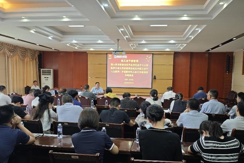 本次讲座特邀请原桂林市总工会二级调研员、桂林市教育工会主席、市职工大学客座教授王光金老师作《深入学习贯彻习近平总书记关于工人阶级和工会工作的重要论述和中国工会第十八次全国代表大会精神,开创新时代工会工作新局面》专题讲座。