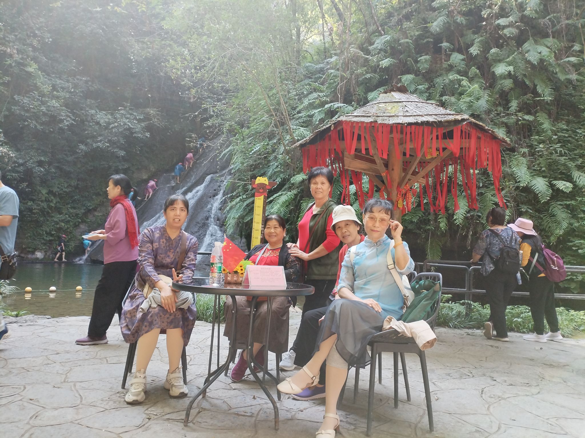 多级瀑布的清凉与秋日的和风,使老同志们神清气爽;藤曼垂壁的丛林密境,让老同志们分外开怀。他们在红枫下漫步,在溪水边驻足,在标志的景点拍照,他们边赏边聊,细数着昔日的情谊和奋进时的点滴,感受着身心与自然相融的亲切和愉悦。