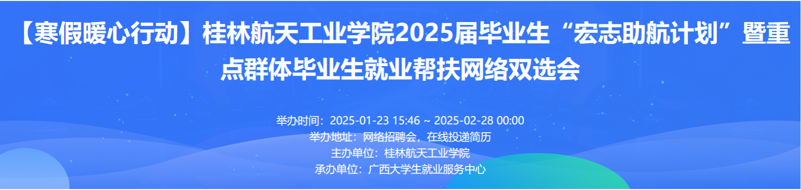 为了充分利用寒假窗口期,全力促进2025届毕业生高质量就业,学工部(处)组织开展以“就业服务不断线,寒假暖心促就业”为主题的就业服务系列活动。
