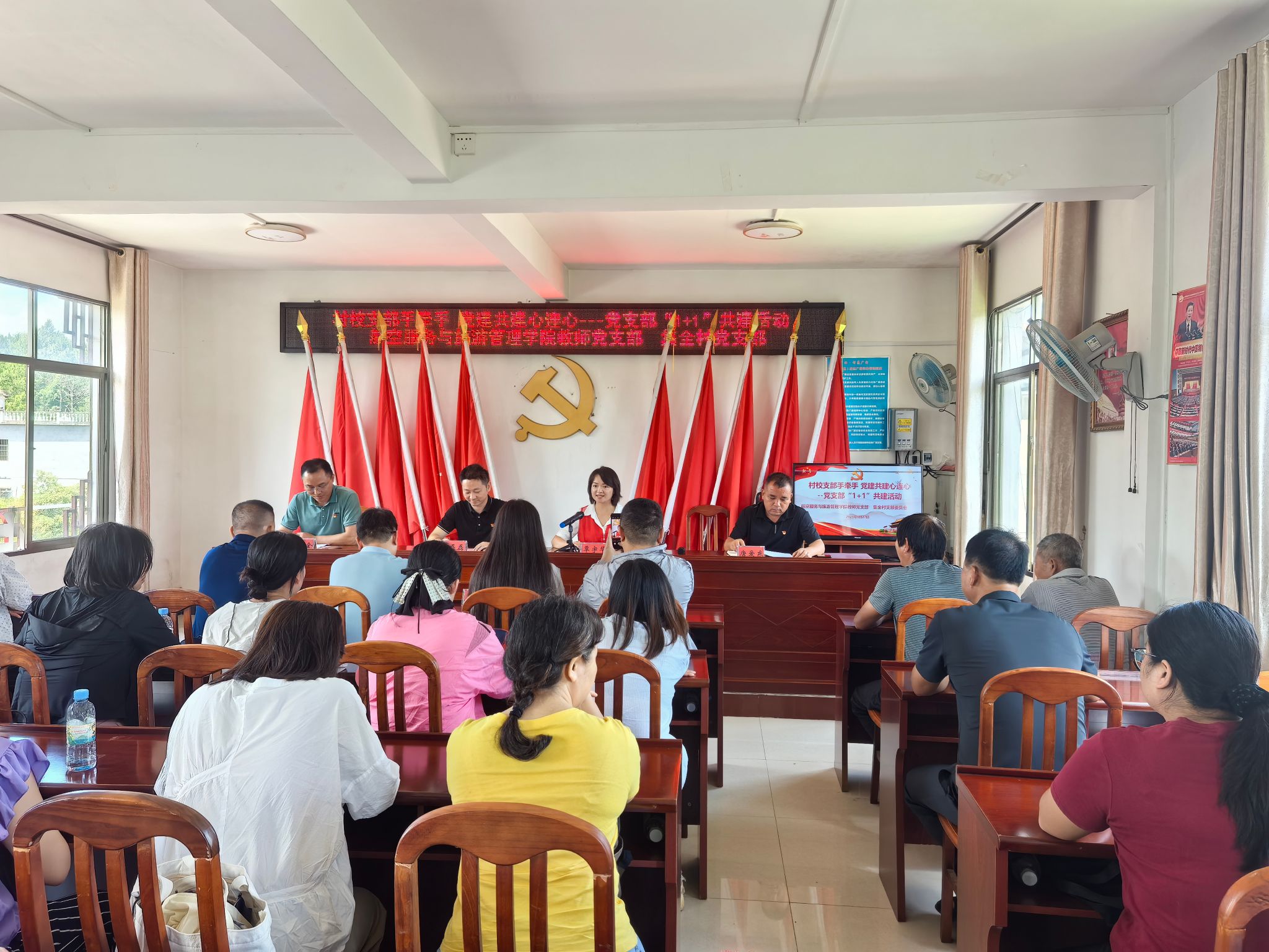 为庆祝中国共产党成立104周年,深化党建引领作用,推动基层党组织互融共建,助力乡村振兴与文旅融合发展。近日,航空服务与旅游管理学院教师党支部赴文市镇集全村开展“1+1”党支部互融共建系列活动。通过座谈交流、专项调研、知识竞赛、专题党课等形式,凝聚党建合力,践行初心使命,推动高校党建资源下沉乡村振兴一线。