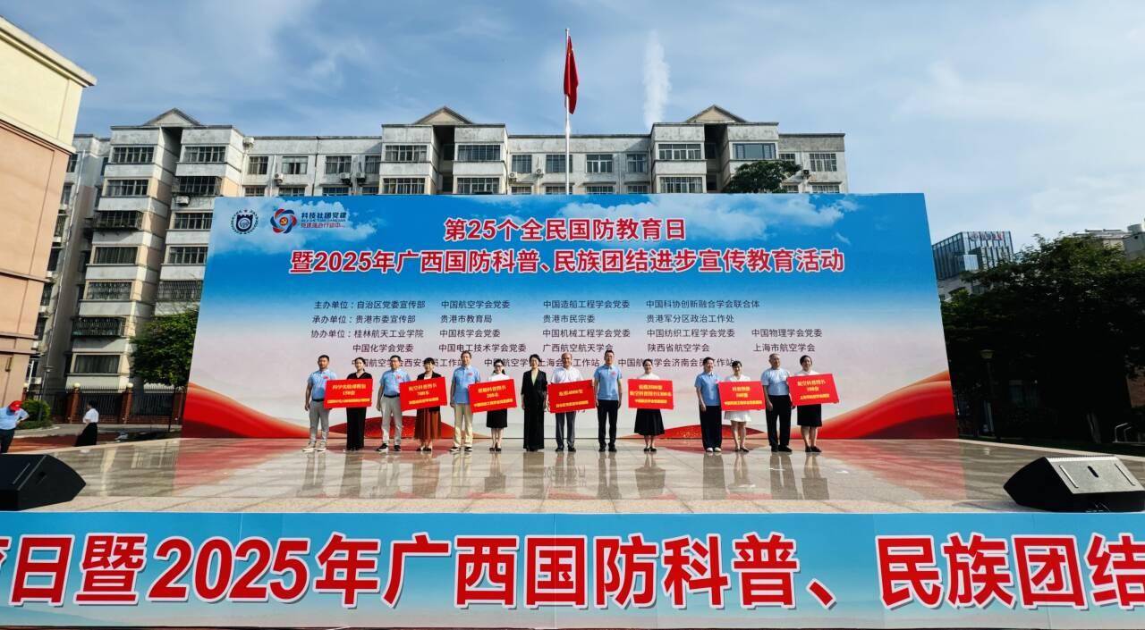 9月20日是我国第25个全民国防教育日。在纪念中国人民抗日战争暨世界反法西斯战争胜利80周年、即将迎来国庆之际,自治区党委宣传部与中国航空学会党委、中国造船工程学会党委、中国科协创新融合学会联合体共同主办,广西航空航天学会、best365手机版官方网站参与协办的2025年广西国防科普、民族团结进步宣传教育活动走进贵港。