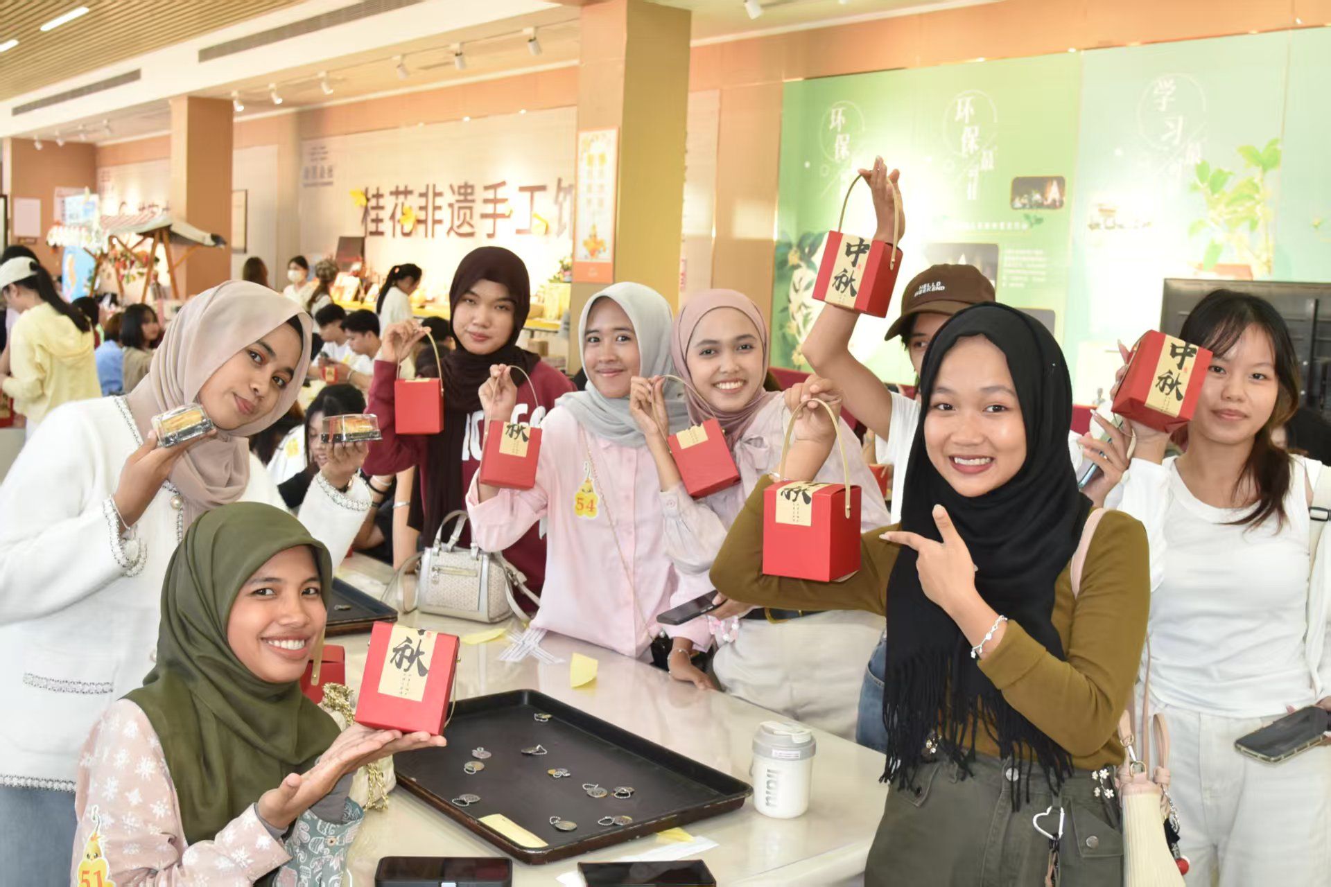 9月27日,best365官网国际教育学院组织2025年来华留学生新生前往桂花公社参加中秋文化体验活动,共同感受中华传统节日氛围,来自越南、泰国、印度尼西亚、老挝和柬埔寨等国的留学生们参加了此次活动。