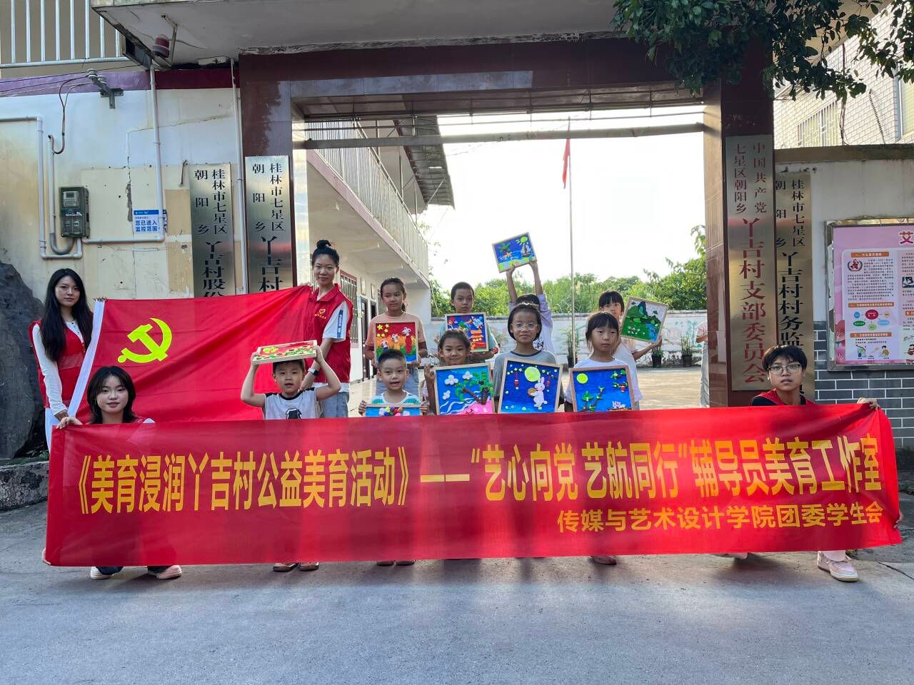 为深入贯彻落实教育部《关于全面实施学校美育浸润行动的通知》精神,深化政校协同育人机制,推动优质美育资源向乡村延伸,9月28日下午,传媒与艺术设计学院组织师生团队赴七星区朝阳乡丫吉村,开展“以艺术之光点亮乡村儿童成长之路”主题美育公益活动。本次活动由学院联合“艺心向党、艺航同行”辅导员美育工作室及学院团委学生会共同主办,通过沉浸式艺术教学,为乡村儿童带去一堂生动而温暖的“美育课”。
