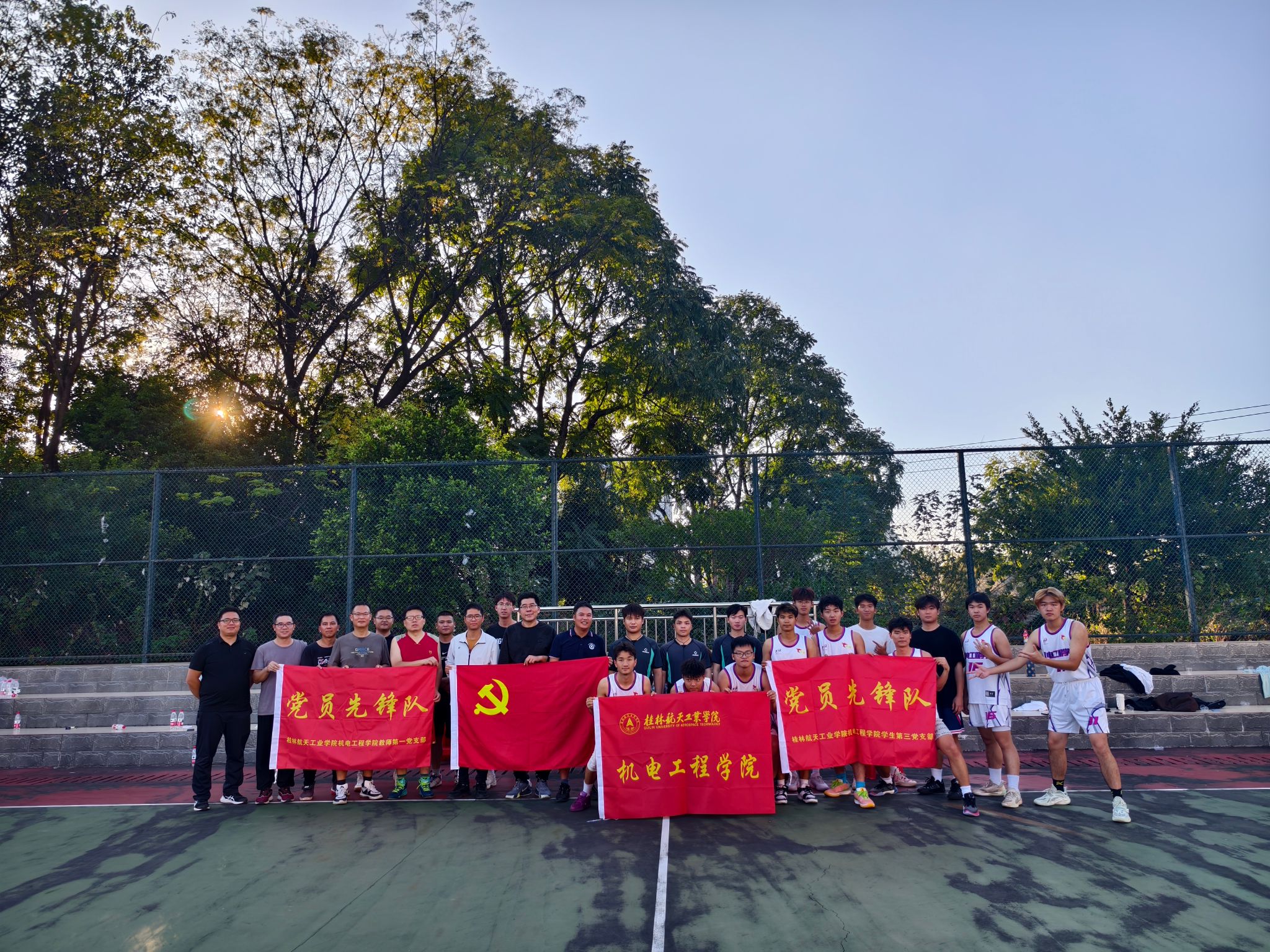 健康中国,师生同行。机电工程学院党委于11月15日举办主题党日活动——师生党支部篮球友谊赛。活动以体育竞技为载体,将党建引领与健康校园建设深度融合,通过师生同场竞技、深度互动,生动诠释了“健康相伴、快乐同心”的活动内涵。