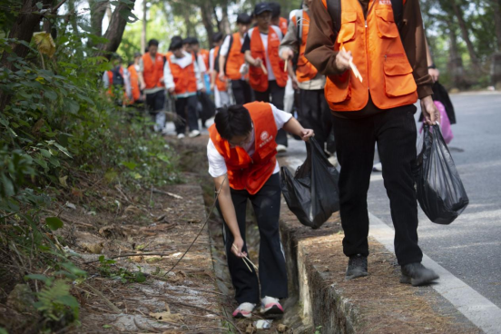 全体志愿者抵达半山观景台后,横幅展开,志愿者们在“保护环境,从我做起”十个大字下庄严列队,齐声宣读“垃圾不落地、权力不任性”的口号,激昂的声音在山谷回荡。这一刻,清廉的标语与绿色的理念一同深深扎根于脚下的泥土,也植入了每一位参与者的心田。