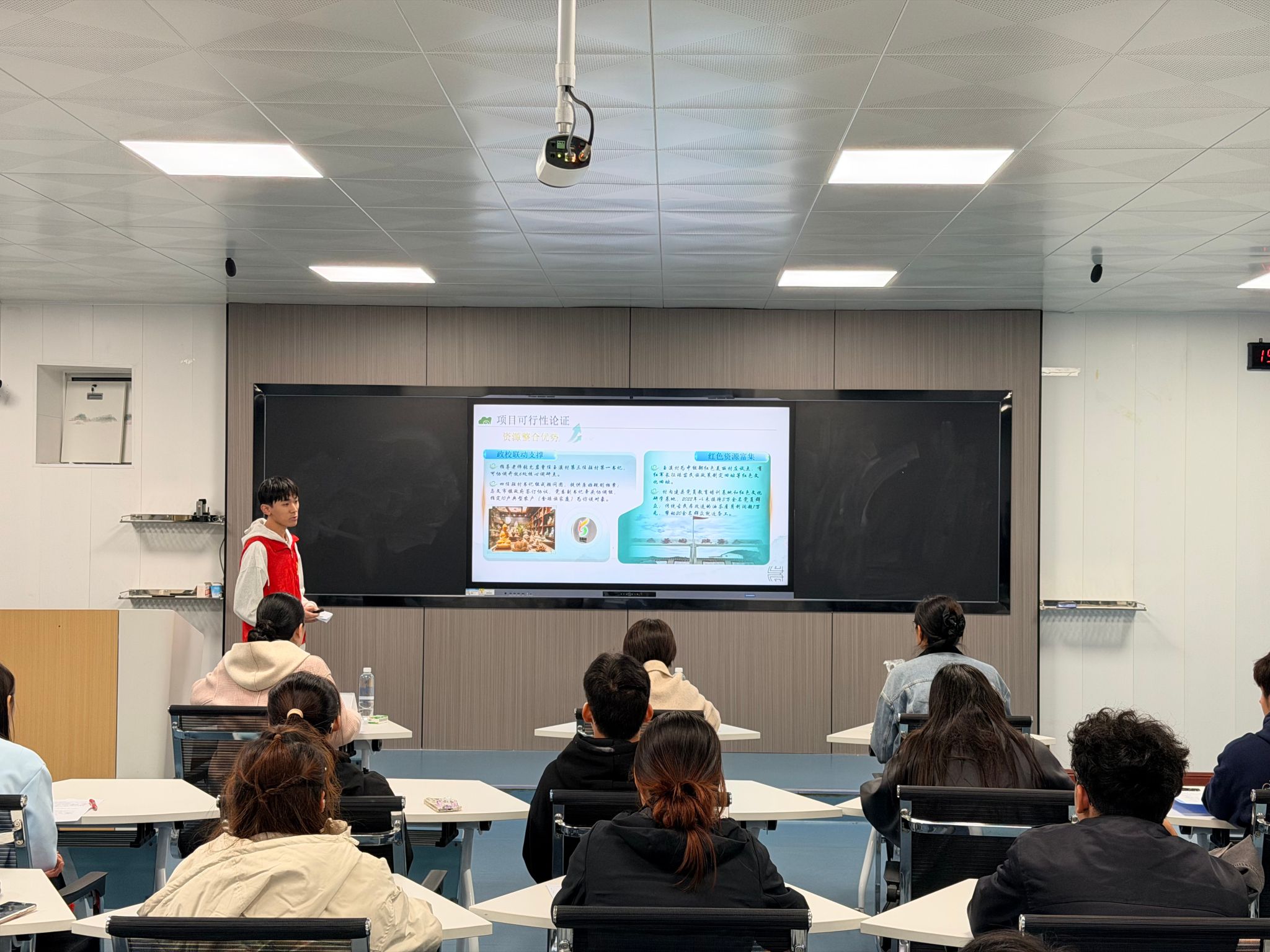 在优秀团队成果展评交流会上,经各学院推荐与校级评选,共有25支优秀团队脱颖而出,依次登台展示调研成果。各团队代表通过“讲解+演示”的形式,结合数据图表、影像记录、调研报告等多种方式,全面呈现了实践过程、创新成果与社会效益。同学们或深入基层开展理论宣讲,或走进乡村社区做好志愿服务,或扎根教育一线践行师德,展现出桂航学子扎实的专业素养、开阔的社会视野和真挚的服务情怀。