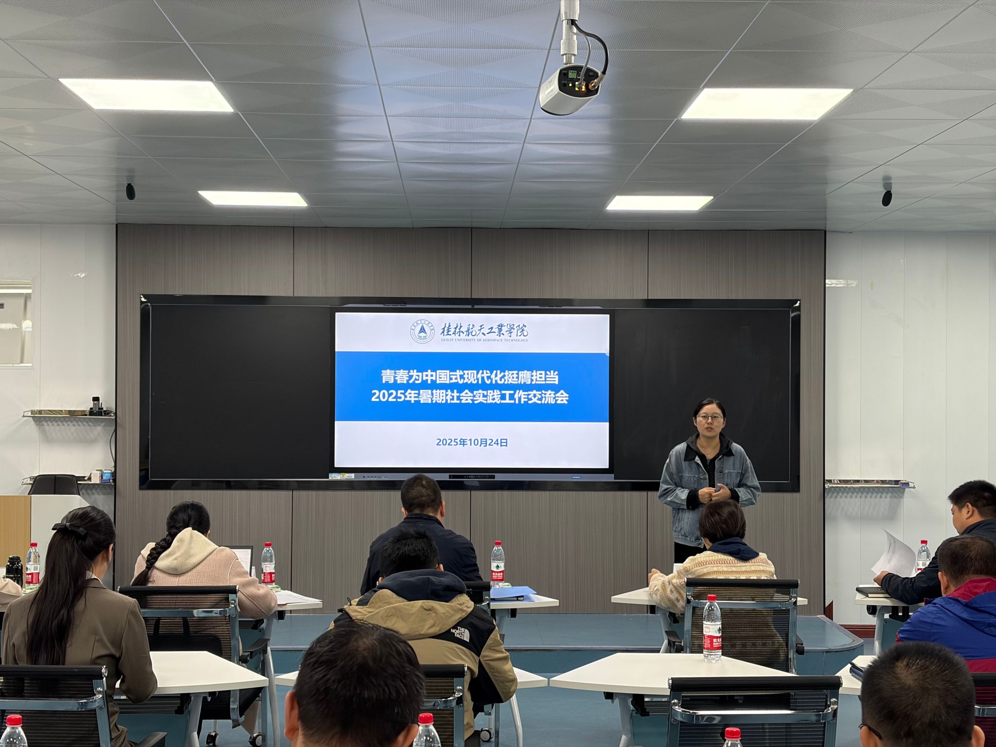 两场展评交流会,不仅是对暑期社会实践团队成果的回顾总结,更让“知行合一”的种子在每一位师生心中扎根。在接下来的时光里,会有更多桂航青年带着这份实践中的热忱与思考,继续奔赴广阔天地,把青春的答卷写在祖国大地上,让实践的光芒照亮更多追梦之路。