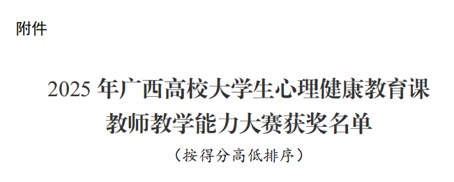 近日,广西壮族自治区教育厅公布了2025年广西高校大学生心理健康教育课教师教学能力大赛获奖名单,best365官网杨恋老师荣获教学能力大赛二等奖。