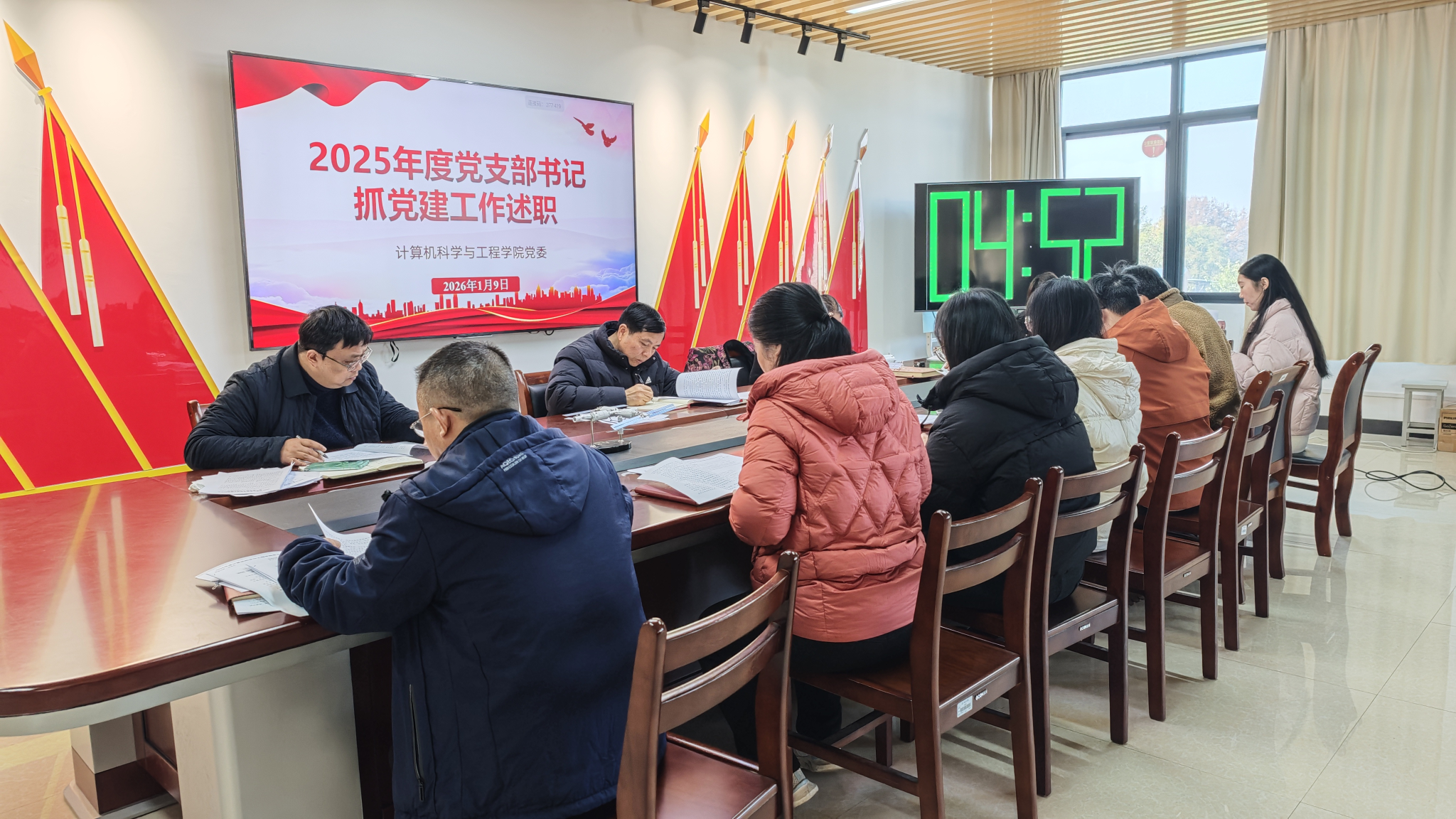 在会议总结阶段,计算机科学与工程学院党委主要负责同志对各支部工作进行了细致点评,也直指当前基层党建工作中存在的薄弱环节和突出问题,并就下一阶段工作提出明确要求。他首先充分肯定了各党支部书记在过去一年中带领支部扎实开展工作的努力与成效,并提出期望与要求:一是要进一步压实管党治党主体责任,将党建与学院学科建设、人才培养等中心工作深度融合。二是要凝练各支部特色品牌,结合计算机专业优势,打造贴合支部实际的党建名片。三是要加强组织队伍建设,配齐支部委员,提升党务骨干能力,激发支部整体活力。