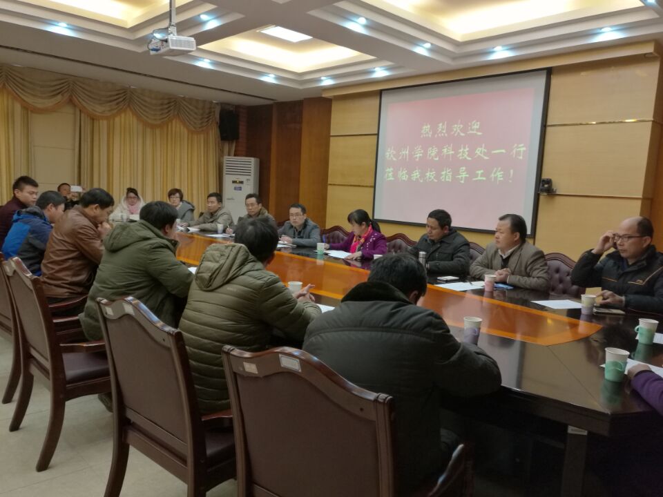 2016年11月25日,钦州学院科技处处长尹艳镇一行12人来best365官网交流调研。best365官网党办校办主任吴世先、发规处处长张立国、科技处副处长魏星、电子信息与自动化学院副院长嵇建波、管理学院副院长陈辉及best365官网科研平台相关负责人、研究人员参加了交流座谈会。