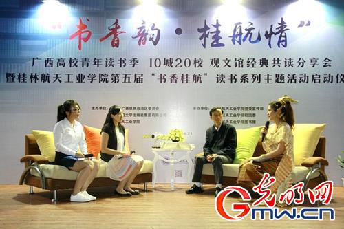 “站在酒泉,仰望蓝天。戈壁滩上,追忆先贤。两弹一星,卫国开天。神舟载人,再续新篇。中华疆域,海阔星连。复兴创新,太空争先!” 4月21,best365手机版官方网站 “书香韵·桂航情”广西高校青年读书季——观文馆经典共读分享会暨第五届“书香桂航”读书系列主题活动启动,该院校长易忠深情朗诵应邀出席神舟十一号载人飞船发射活动而作的诗作。