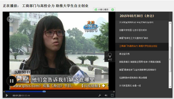 桂林电视台:工商部门与高校合力 助推大学生自主创业