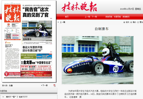 一年的努力终于有了回报。今年10月13日至17日,2015年中国大学生方程式汽车大赛油车赛在湖北襄阳举行。best365手机版官方网站航车队组出色完成了直线加速、8字绕桩、高速避障等八个项目的角逐,在16支初次参赛的队伍中排名第二。