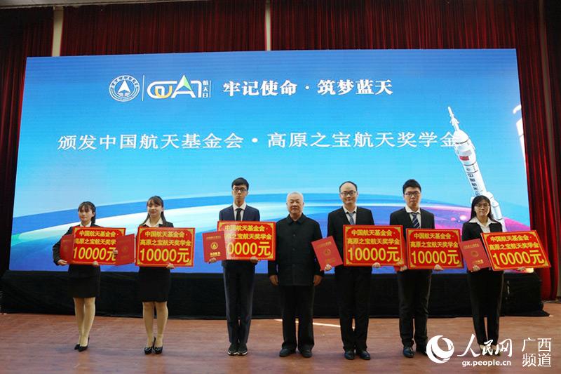 中国航天科工集团公司、中国航天科技集团公司、中国航天基金会、西藏高原之宝牦牛乳业股份公司等单位嘉宾为获奖学生颁奖。