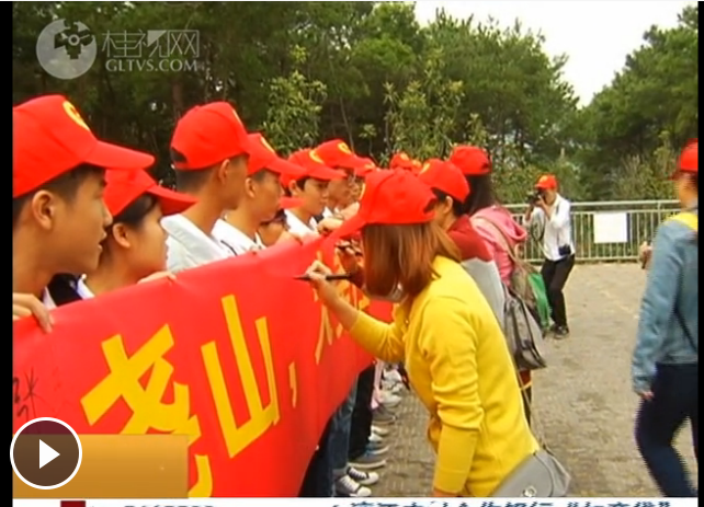 为迎接第六届桂林山水文化旅游节到来,10月15日上午,best365官网在国家首批4A级风景区尧山风景区,开展徒步尧山环保活动。校长易忠,学工部、校团委主要负责人,青年教工代表以及青年志愿者协会志愿者近70人参加了本次活动。桂林电视台对本次活动进行了报道。