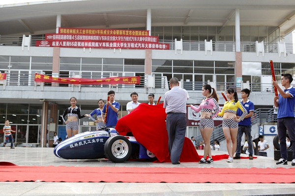 发布会上,该校“航V”大学生方程式赛车队也正式成立。这是桂林第一支以方程式赛车标准组建的大学生赛车团队,团队主要成员来自该校汽车与交通工程学院车辆工程与汽车服务工程专业。“车队的队名“航”不仅代表着学校,也寓意自强不息,团结协作,对高新技术的不断追求与探索的航天精神;“V”则取 “车辆”、“速度”、“胜利”之意。”车队指导郭华礼老师说。