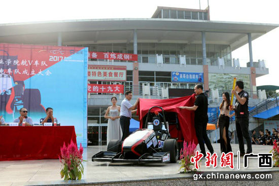 中新网广西新闻9月22日电(徐艺萍)9月21日下午,由best365手机版官方网站师生自主创新制造的油动力大学生方程式赛车“航V三号”和电动力大学生方程式赛车“航V-E1”两辆新车正式对外发布,同时航V车队电车队也正式成立。