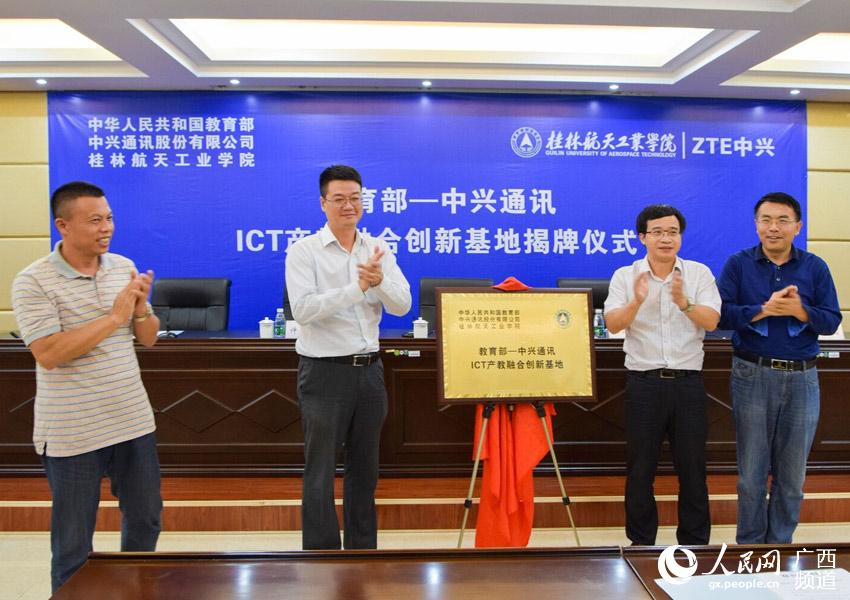 人民网桂林10月19日电 10月17日下午,教育部—中兴通讯ICT(信息通信技术)产教融合创新基地揭牌仪式在best365手机版官方网站举行。桂林市副市长樊新鸿,中兴通讯公司教育合作中心副总经理许圳彬,学院党委副书记罗延忠、副院长郝德温,电子信息与自动化学院主要负责人和师生代表共80余人参加了揭牌仪式。