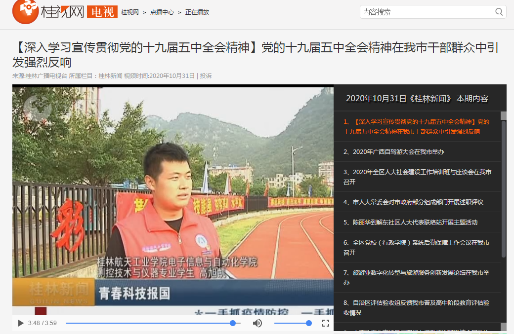 (新闻链接:http://tv.gltvs.com/202010/2020103120491284b0639a5cb6431a.shtml)