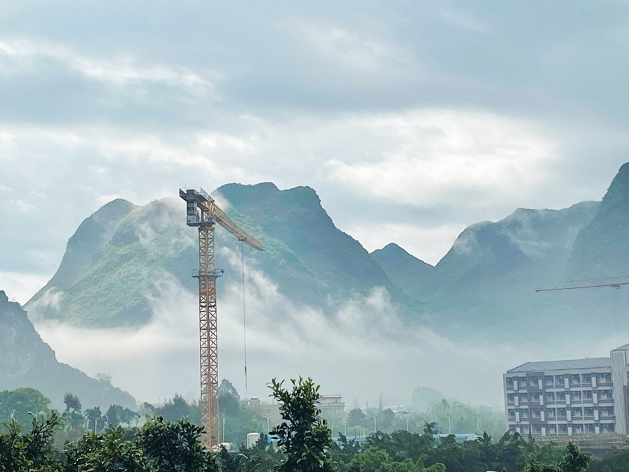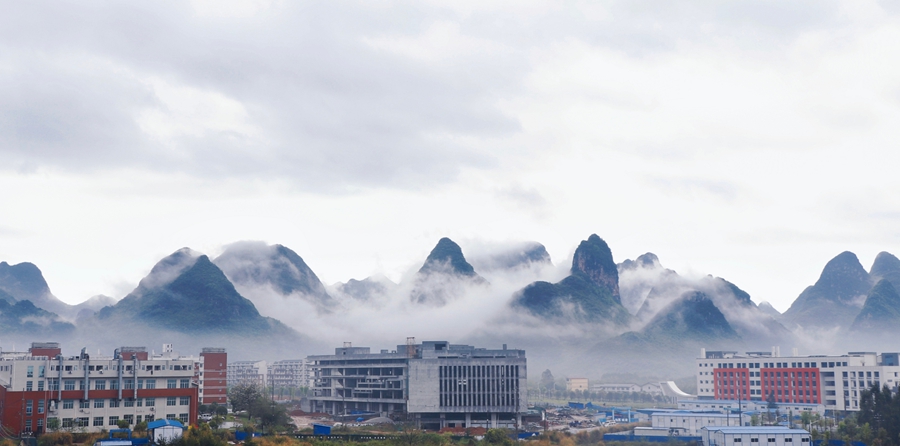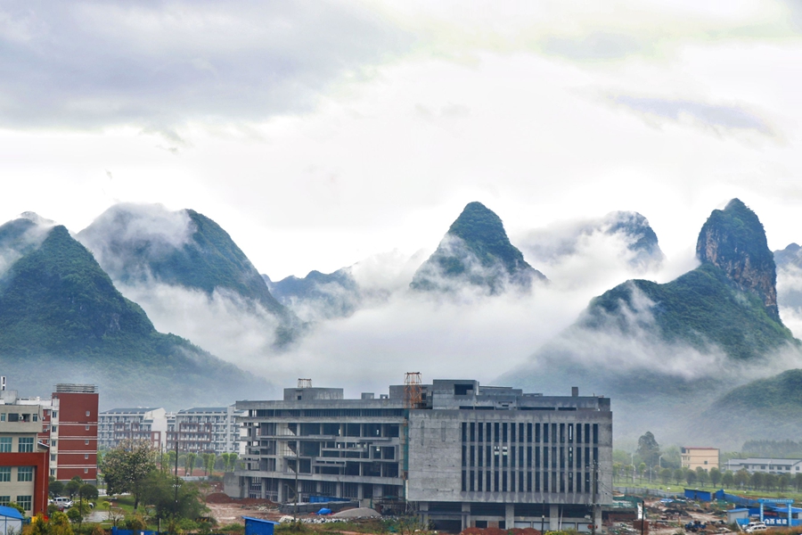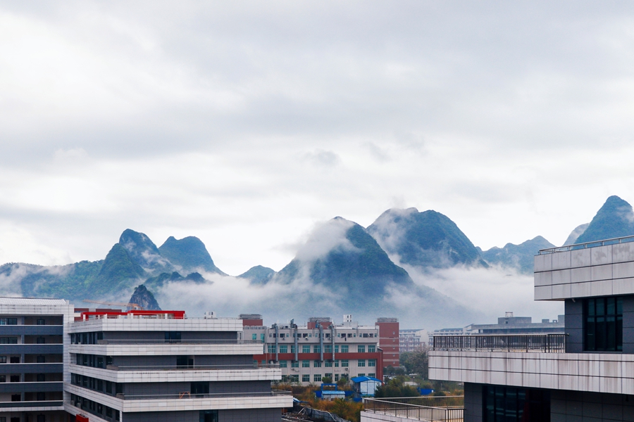 近日,一场雨过后,best365手机版官方网站旁呈现出了一幅雨后桂林山水水墨画。远处丛山烟雾缭绕,仙气飘飘,如梦似幻,是梦境,还是仙境?