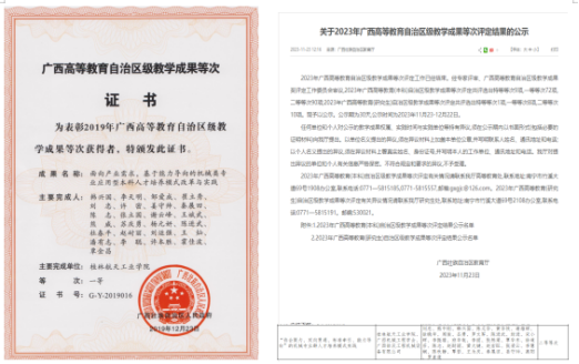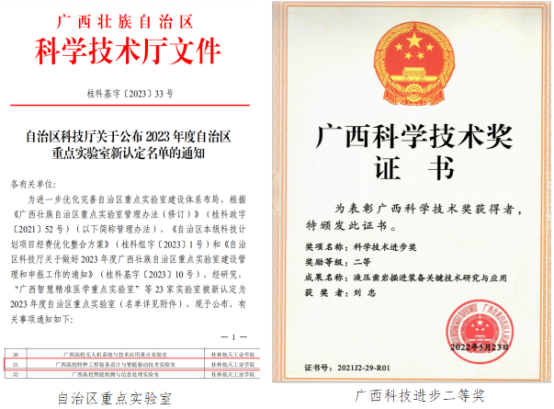 图9 自治区重点实验室(左);教师团队成果获广西科技进步二等奖(右)