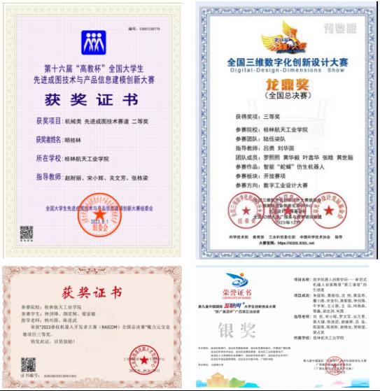 图10 专业学生获学科竞赛自治区级以上奖励证书(部分)