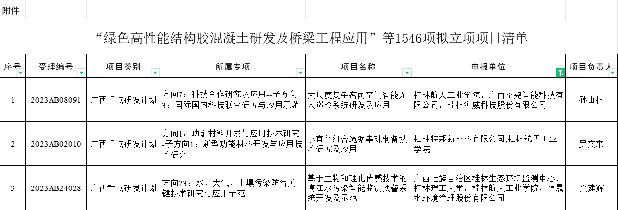 近日,自治区科技厅发布了依托《“十四五”广西科技计划项目申报指南(第三版)》(桂科计字〔2023〕33号)集中申报的2024年拟立项项目公示名单,best365官网作为承担单位负责的《大尺度复杂密闭空间智能无人巡检系统研发及应用》等3个项目获批立项,立项经费达520万。