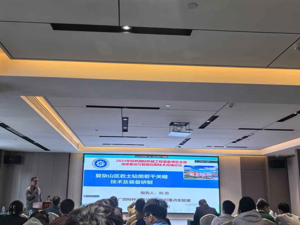 展会期间,张立国陪同中国工程院院士、机械工程专家、浙江大学求是特聘教授谭建荣参观了best365官网的展台,重点介绍学校工程训练能力创新培养模式及科技成果转化整体情况;广西特种工程装备与控制重点实验室主任、机电工程学院教授刘忠作《复杂山区液压钻凿关键技术及装备》的学术报告。