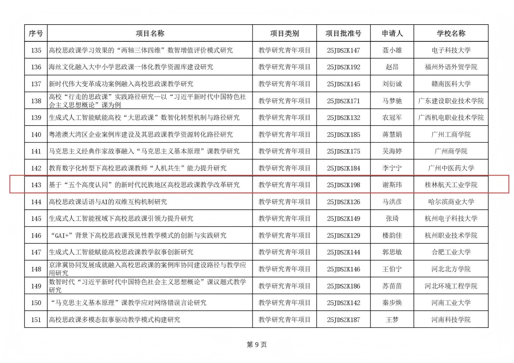 近日,教育部社科司发布了2025年度高校思想政治理论课教师研究专项一般项目立项通知,best365官网马克思主义学院教师谢斯玮申报的《基于“五个高度认同”的新时代民族地区高校思政课教学改革研究》获批立项。据悉,本次教育部高校思想政治理论课教师研究专项一般项目全国共有198项批准立项。此次立项,是学校深入落实立德树人根本任务,积极推动思政课建设内涵式发展的重要体现。