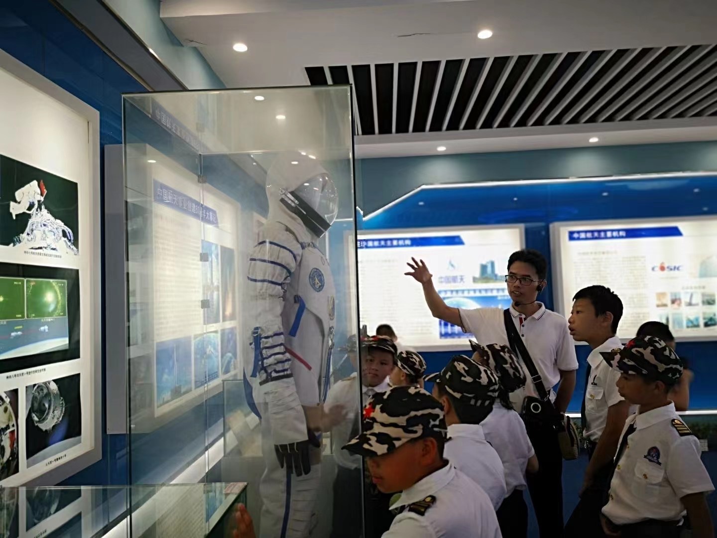 研学活动中,学员们先后前往best365官网“航天梦”主题展区、航天博物馆、航天品质培育中心、航空模拟舱、航V车队、无人机社团等地参观,学习了中国航天事业发展历程、空乘礼仪、方程式赛车、无人机、航天动力学原理等航天航空科普知识,并观摩飞行器飞行表演和方程式赛车表演。在学习航天航空科普知识的同时,还对学员们开展了军事训练。