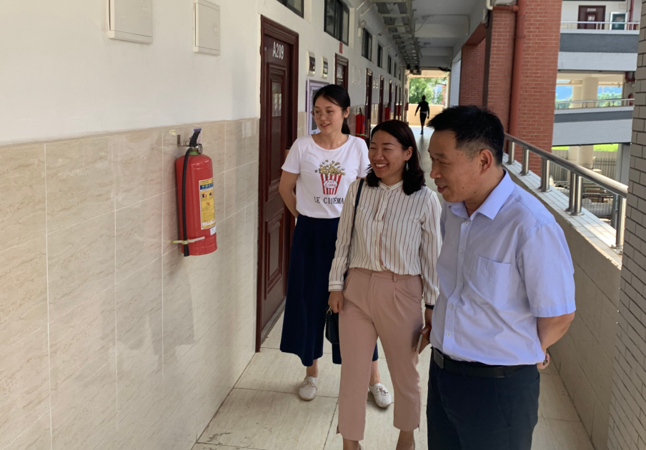 孙山林一行对公寓整体环境、文化宣传栏、消防设施设备、电子监控设备、人脸识别系统、紧急疏散通道进行仔细检查。检查中,孙山林特意查看了2021届毕业生宿舍,详细了解了毕业生的生活状况、未来规划和离校前准备等情况,并对国际学院近日开展的消防逃生演练活动,公寓管理制度上墙、公寓张贴警示标识等安全工作给予了充分的肯定。孙山林强调要继续落实学生宿舍管理制度、学生宿舍安全工作检查制度、学生宿舍值班制度,妥善安排好假期学生宿舍值班工作,确保学生安全。