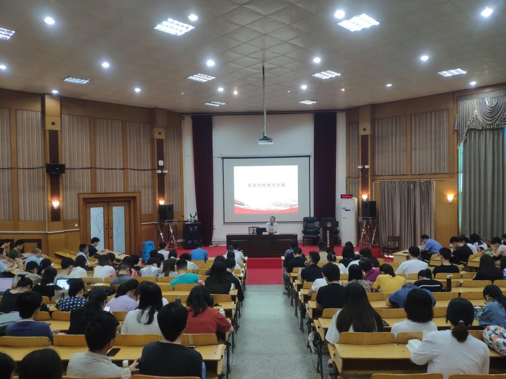 6月3日下午,胡泽民副校长在北校区2108教室作党课辅导《坚持对党绝对忠诚》,管理学院党总支、机关第三党总支第二党支部全体师生党员一同聆听讲座。