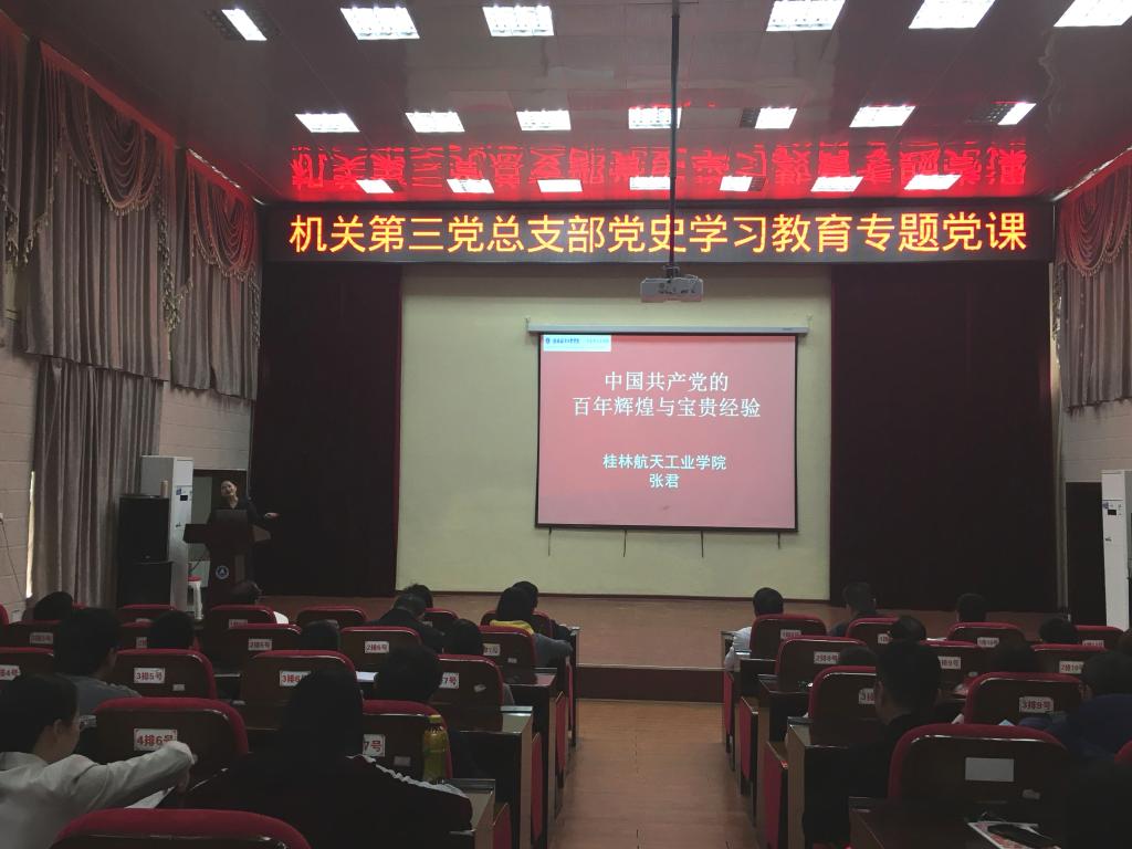 为扎实开展党史学习教育,深入学习贯彻习近平总书记在党史学习教育动员大会上的重要讲话精神,4月21日下午,机关第三党总支部在电教馆举办党史学习教育专题党课,邀请了马克思主义学院张君副教授做宣讲,学校党委常委、副校长罗国湘以普通党员身份参加了此次党课学习,总支全体党员、入党积极分子共65人聆听了党课。