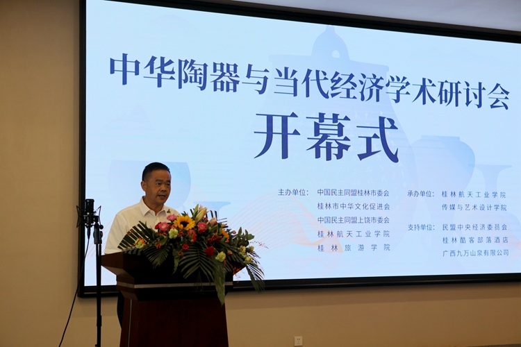 9月15日,由桂林市中华文化促进会、中国民主同盟桂林市委员会、best365手机版官方网站等单位联合举办的中华陶器与当代经济学术研讨会在我市开幕。民盟广西区委会专职副主委黄世喆,市委常委、统战部部长蒋育亮,市政协副主席、民盟桂林市委会主委谭建国出席研讨会。