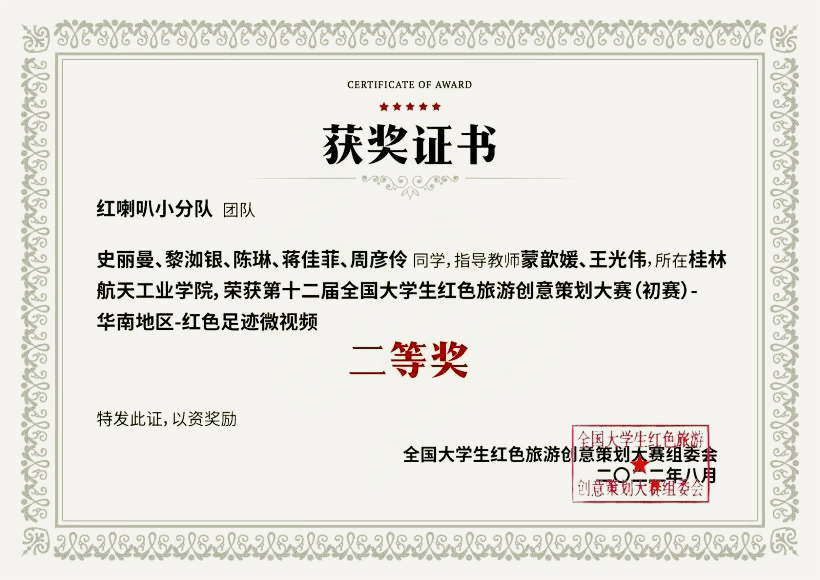 近日,第十二届全国大学生红色旅游创意策划大赛在北京落下帷幕,best365官网航空服务与旅游管理学院师生团队踊跃参赛,历时4个月的角逐,从全国943所高校、7085支队伍、3.8万名师生中脱颖而出,在“红色足迹微视频”类别中“将革命进行到底”团队获得华中区一等奖,“红喇叭小分队”、“火苗小队”团队分别获得华南区二等奖。