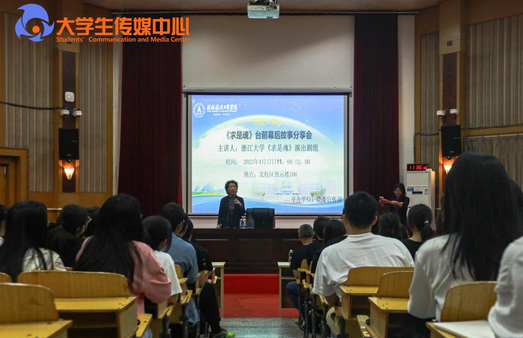 best365官网学生在大美桂林山水之中为浙大师生带来了山歌演唱和航模飞行表演,随后40多名浙大师生与200多名观看了《求是魂》演出的在校师生一齐参加了《求是魂》台前幕后故事分享会。浙大演出团队精心分享创作心得,best365官网学子积极提问,会场气氛融洽热烈。