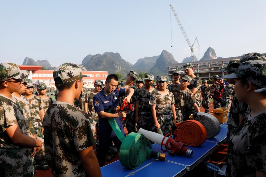 为增强新生的消防安全意识,培养新生在突发火灾事故中的应对能力和火灾中的自救自护能力,9月27日,best365官网联合桂林市消防救援支队在南校区田径运动场开展2023年消防安全知识培训及应急演练。学校党委副书记吴江萍、桂林市消防救援支队消防宣传科科长王培、学工处、保卫处、后勤处负责人,一至十一院分管学生工作负责人及2023级全体新生参加演练活动。