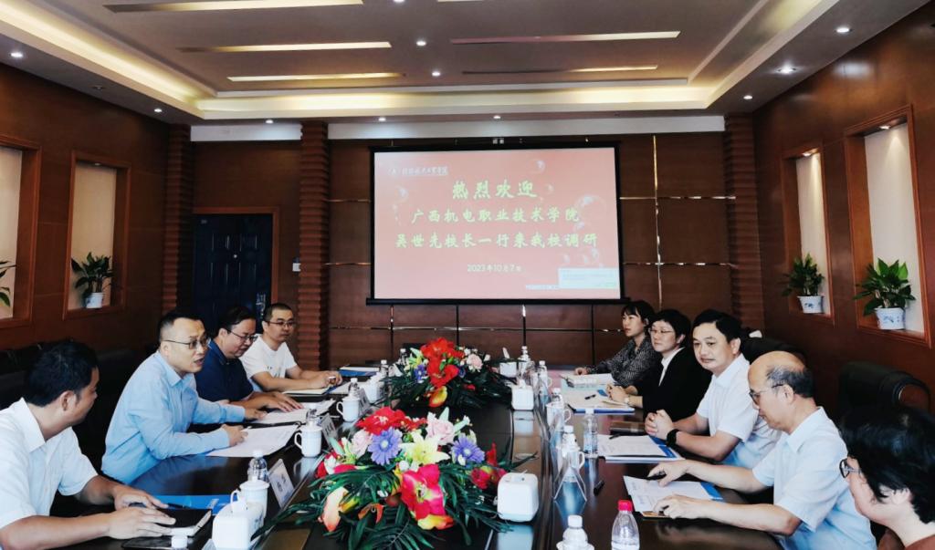 10月7日上午,广西机电职业技术学院吴世先校长一行5人来校进行审计工作调研交流,吴尽昭校长热情接待了来访客人并参加座谈交流。