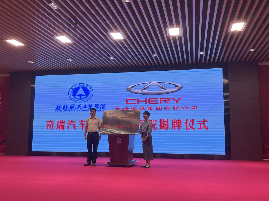 活动现场,姚永来和吴江萍共同为奇瑞汽车现代产业学院揭牌。