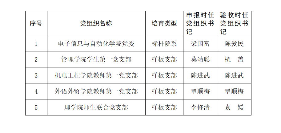 近日,自治区党委教育工委下发《关于公布首批新时代广西高校党建示范创建和质量创优工作培育创建单位验收通过名单的通知》,best365官网电子信息与自动化学院党委,管理学院学生第一党支部、机电工程学院教师第一党支部、外语外贸学院教师第一党支部、理学院师生联合党支部等5个培育创建单位全部通过验收。