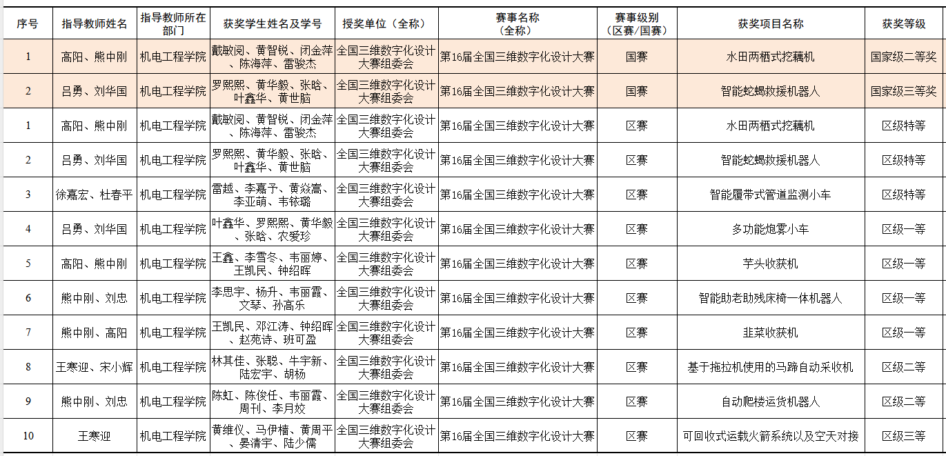 该大赛自2008年发起举办以来,已连续成功举办至第16届,受到各地方、高校和企业的重视,赛事规模稳定扩大,参赛高校连续每届超过600所、参赛企业每年超过1000家,初赛参赛人数累积突破800万人。机电工程学院高度重视本次大赛,积极组织学生队伍参与竞赛,通过校内选拔,突围参加区赛的各项目经过激烈角逐,获广西区特等奖3项、一等奖4项、二等奖2项、三等奖1项,其中2支队伍从广西赛区的众多参赛队伍中脱颖而出,入围2023年全国三维数字化创新设计大赛全国总决赛,并最终斩获全国二等奖1项、三等奖1项的佳绩。