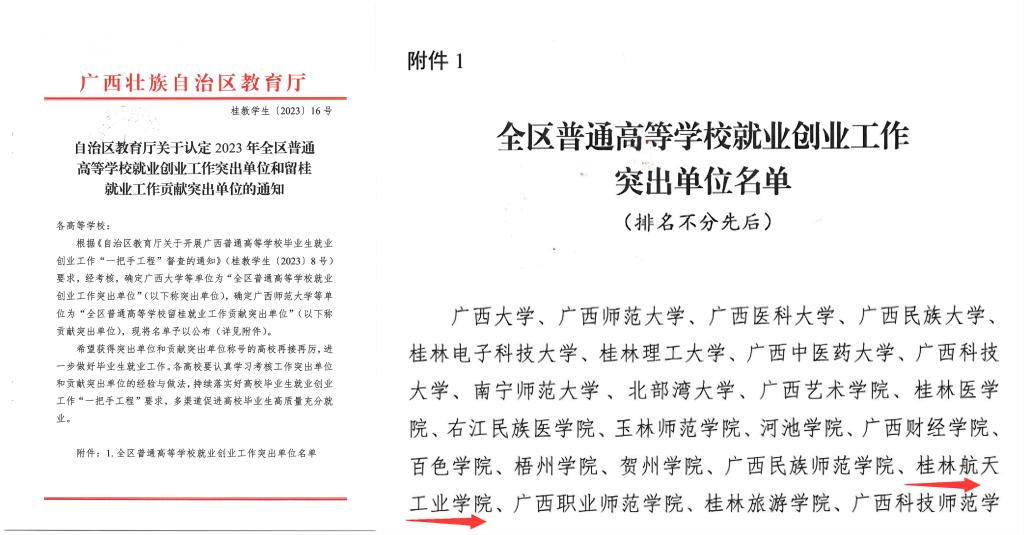 12月27日,根据广西壮族自治区教育厅下发的 《自治区教育厅关于认定2023年全区普通高等学校就业创业工作突出单位和留桂就业工作贡献突出单位的通知》(桂教学生〔2023〕(16号)文件,best365官网荣获“2023年全区普通高等学校就业创业工作突出单位”荣誉称号。