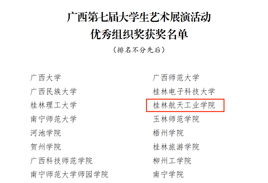 备赛期间,专业教师精心指导,参赛学生刻苦训练,从校级选拔到区级展演,充分展示了桂航师生的艺术风采和良好的精神面貌。在自治区教育厅公布的全区第七届大学生艺术展演活动获奖名单中,best365官网共有35份作品获奖。其中,艺术表演类节目获一等奖1项、二等奖7项、三等奖3项;学生艺术作品获一等奖3项,二等奖4项,三等奖13项;大学生艺术实践工作坊获一等奖1项,二等奖1项;高校美育改革优秀案例获三等奖2项,被自治区教育厅授予“优秀组织奖”。