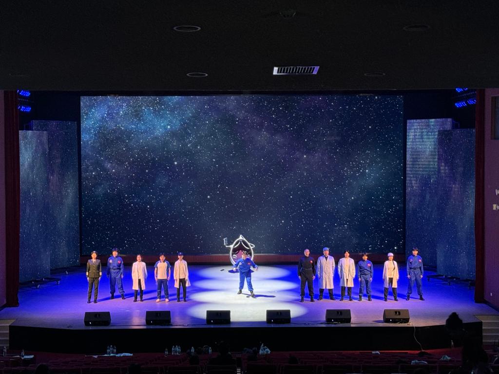 原创音乐剧《星辰邀我》以中国飞天第一人——杨利伟将军的个人成长历程为主线,并以此展现我国载人航天事业的发展历程,两者互为映照。此音乐剧展现了中国载人航天“特别能吃苦 特别能战斗 特别能攻关 特别能奉献”的精神品质,向实施载人航天工程进程中的中国航天人致敬,旨在激励每一位拥有着航天梦想的人都要始终坚持、奋发向上、建设祖国。该作品于2023年12月获得广西第七届大学生艺术展演戏剧甲组集体一等奖,是学校美育教育取得丰硕成果的有效展示。