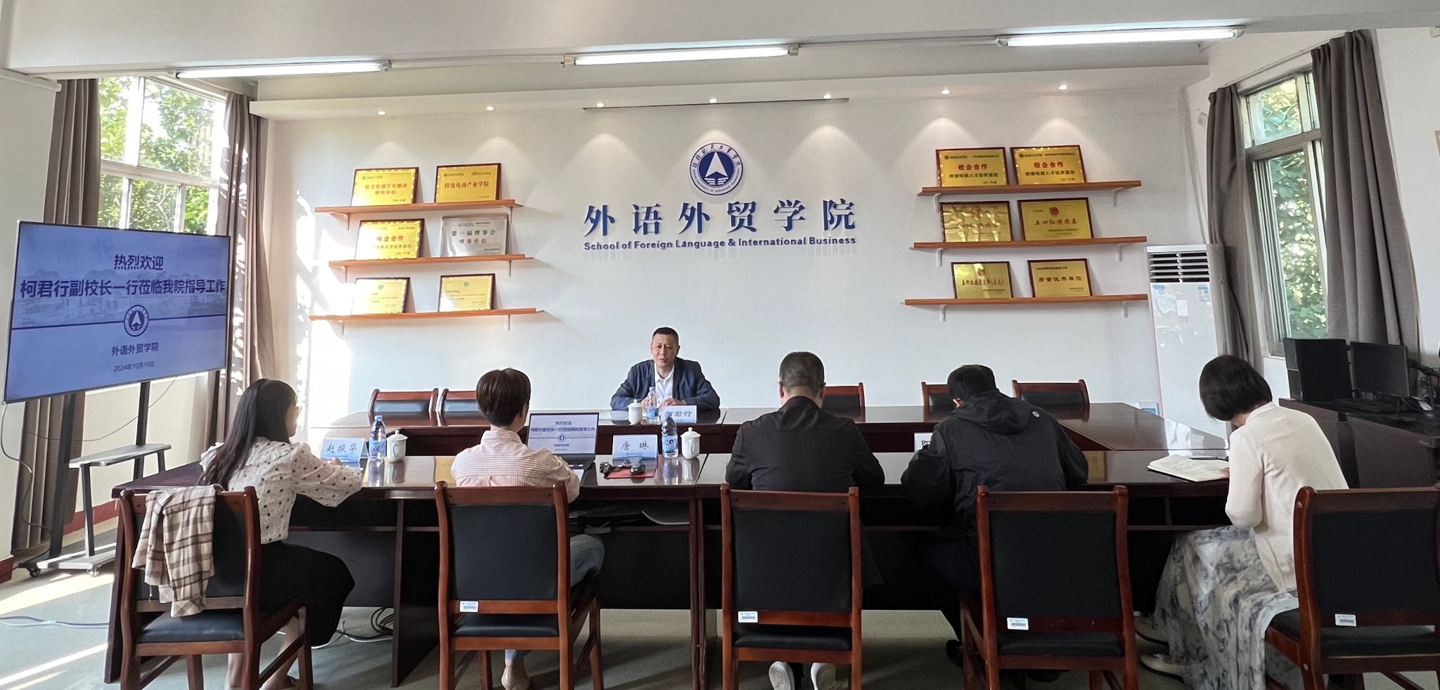 10月10日上午,副校长柯君行到外语外贸学院调研,学院领导班子参加调研会。