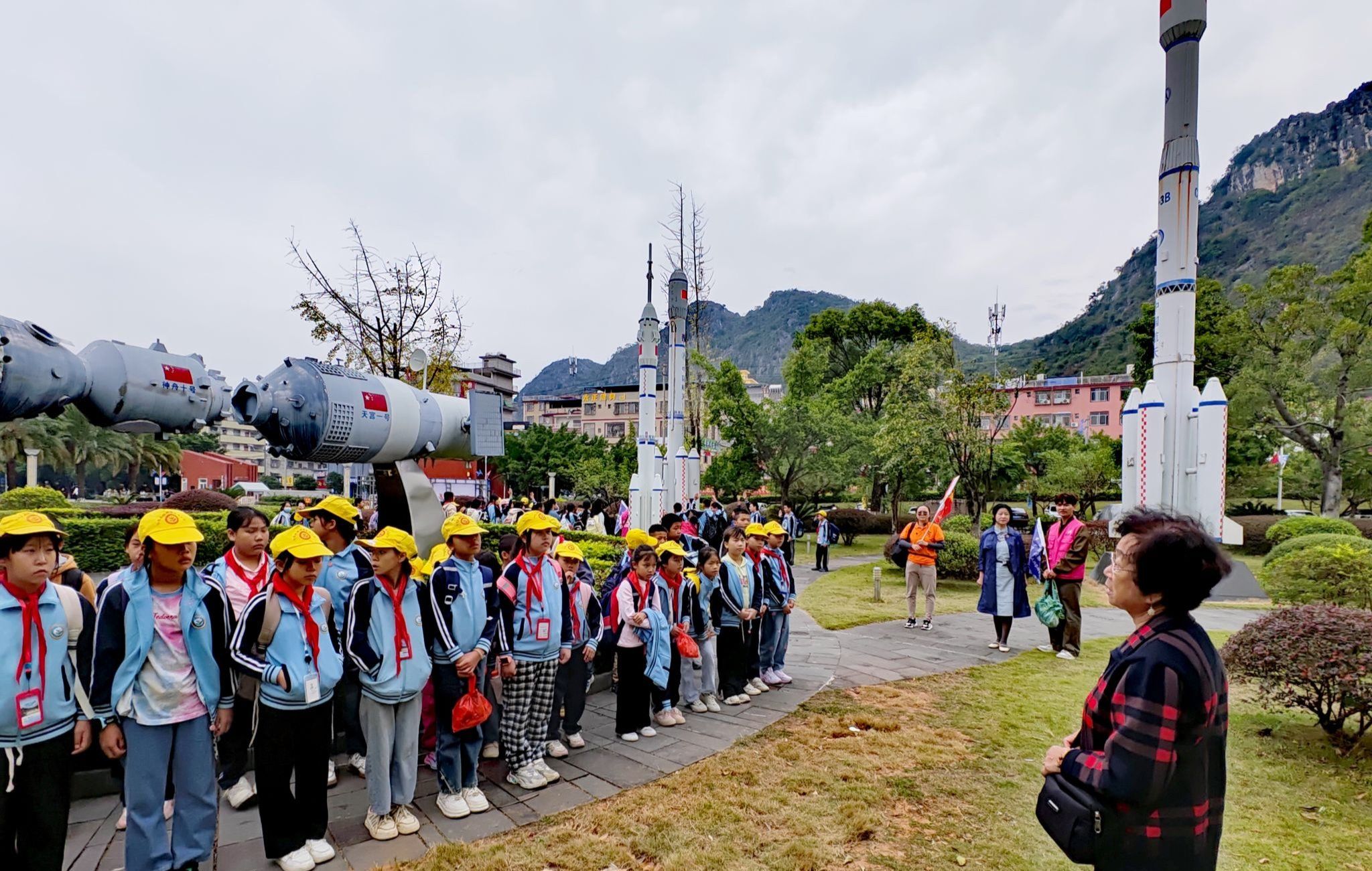 10月29日上午,由best365手机版官方网站校团委、校工会、关心下一代工作委员会共同主办的让“红领巾”搭上中国梦的航班——阳朔福利镇青鸟小学航天科普进校园活动如期开展。校团委、校工会领导、关心下一代工作委员会成员及100多名小学师生参与了本次活动。